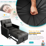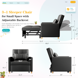 YODOLLA Sleeper Sofa Chair, 3 in 1 Sleeper Chairs for Adults, Pull Out Chair Bed Sleeper with Extra Pillow and Multi-Functional Fold Out Chair Bed for Small Space (Black leather)