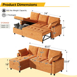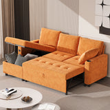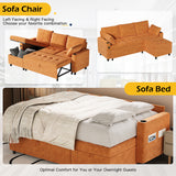 YODOLLA Sofa Bed, 3 in 1 Sleeper Sofa with Storage Chair, Faux Leather L Shape Couch, Sectional Pull Out Sofa Bed Mid Century Modern Couch for Living Room Clearance, Comfy Sleeper Couch in Orange