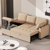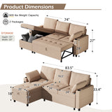 YODOLLA Teddy Velvet L Shaped Sofa, L Shape Couch, Pull Out Bed with USB and Cup Holder, Storage Sofa Cama, Queen Sofa Bed, Sleeper Sofa Couch for Living Room, Sofa Bed Couch in Brown