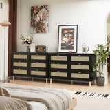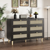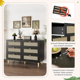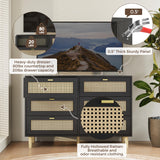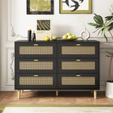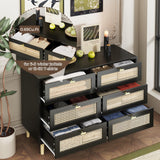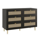 YODOLLA Wood Dresser, 6 Drawer Double Rattan Dresser, Moisture-Resistant Wide Storage Dresser with Chest of Drawers, Ideal for Bedroom, Living Room, and Hallway, Black