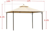 10 x 12 FT Double-Roof Softtop Gazebo Canopy, Outdoor Steel Frame Gazebo Tent for Patio or Deck, Beige