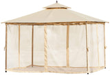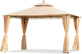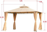 10 x 12 FT Double-Roof Softtop Gazebo Canopy, Outdoor Steel Frame Gazebo with Mosquito Netting, Beige