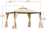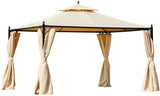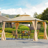 10 x 12 FT Double-Roof Softtop Gazebo Canopy, Outdoor Steel Frame Gazebo with Shade Curtains, Beige