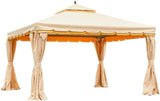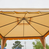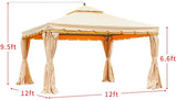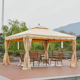 12’ x 12’ Canopy Gazebo Double Roof Patio Gazebo Steel Frame with Netting and Shade Curtains, Beige