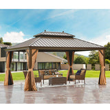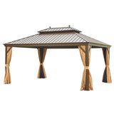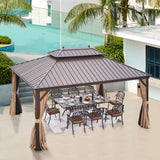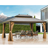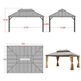 12' x 16' Hardtop Gazebo Galvanized Steel, Double-Roof Gazebo Pergolas Aluminum Frame with Netting & Curtains