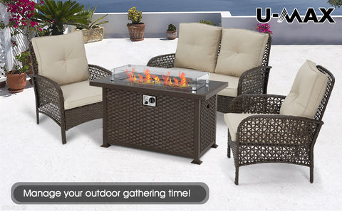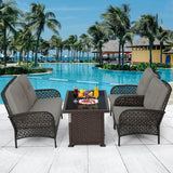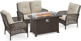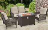4 Pcs Outdoor Patio Furniture Sets Rattan Sofa Chair Wicker Set, Deck Furniture Set with Firepit Table, Brown