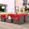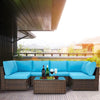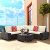 6 Pcs Outdoor Sectional Furniture Set, Patio PE Rattan All Weather Wicker Sofa Set with Cushions Arc-Shaped Table, Brown