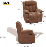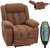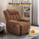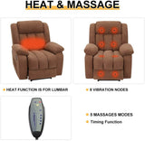 Massage Recliner Chair Fabric Heated Ergonomic Lounge Chair Overstuffed Reclining Chair Single Sofa for Living Room, Remote Control, Chocolate