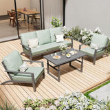 AECOJOY Aluminum Patio Furniture Set with Waterproof Cover Modern Metal Outdoor Patio Furniture Clearance, Adirondack Patio Conversation Sets for Lawn, Backyard, and Deck Green with Green Cushions