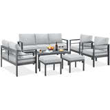 AECOJOY Aluminum Patio Furniture Sets with Waterproof Cover, Aluminum Outdoor Furniture Sets Metal Patio Sets for Balcony, Light Grey
