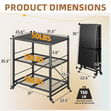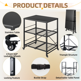 AECOJOY Foldable Outdoor Grill Cart Rolling Dining Table with Three-Shelf,Garden Patio BBQ Kitchen Food Prep Cart,Black