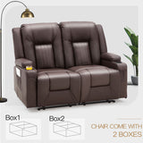 AECOJOY Manual Reclining Loveseat with Cup Holders&Side Pockets, PU Leather Double Recliner Loveseat Home Theater Seating-Brown