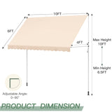 AECOJOY Manual Retractable Awning, 118" Non-Screw Outdoor Patio Awning, Adjustable Pergola Sun Shade Cover with UV Protection, Ideal Outdoor Canopy for Window or Door, Beige