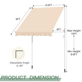 AECOJOY Manual Retractable Awning, 78" Non-Screw Outdoor Patio Awning, Adjustable Pergola Sun Shade Cover with UV Protection, Ideal Outdoor Canopy for Window or Door, Beige