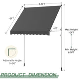 AECOJOY Manual Retractable Awning, 78" Non-Screw Outdoor Patio Awning, Adjustable Pergola Sun Shade Cover with UV Protection, Ideal Outdoor Canopy for Window or Door, Dark Grey