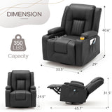 AECOJOY Massage Manual Recliner Chair with Heat and Vibration Massage, PU Leather Swivel Rocker Recliner Chair for Adults with 2 Cup Holders, Remote Control-Black