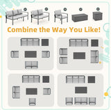 AECOJOY Metal Patio Furniture Set with Cover Outdoor Furniture sets With Storage Boxes on Sale with Light Grey Cushion for Balcony Porch, Lawn and More
