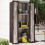 AECOJOY Outdoor Storage Cabinet Metal Organizer with Doors and Shelves Patio Storage Building for Outside, Garden & Garage in Brown