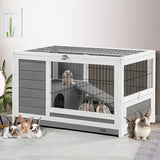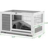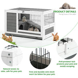 AECOJOY Rabbit Hutch with Deeper No Leak Tray & Run 35.4’’ Pet House for Small Animals Rabbit Cage Guinea Pig House Bunny Hutch Indoor & Outdoor
