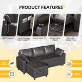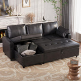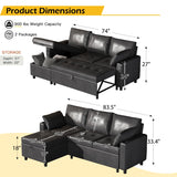 AECOJOY Sofa Bed, 3 in 1 Sleeper Sofa with Storage Chair, Faux Leather L Shape Couch, Sectional Pull Out Sofa Bed Mid Century Modern Couch for Living Room Clearance, Comfy Sleeper Couch in Black