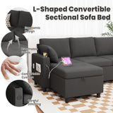 【Convenient features】This stylish AECOJOY L shaped sofa is equipped with USB charging ports for device charging. The couch bed features built-in cup holders and hidden side pockets for convenient storage of beverages and small items, keeping the space tidy