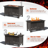 • 3-IN-1 DESIGN: 3-in-1 fire pit table can be used for barbecuing with the lid open, for warming up, and even for chilling drinks and fruits inside after removing the Barbecue grill.  Simply closing the lid transforms it effortlessly into a dining table.