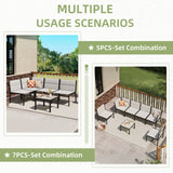• ✅ Durable & Weather-Resistant Structure 🌦️💪 Built with a heavy-duty, powder-coated steel frame, this set is rust-resistant, sturdy, and designed to withstand outdoor elements while maintaining its elegant look for years to come. The secure buckle connection ensures the sofa remains stable and sturdy during use.