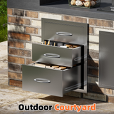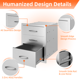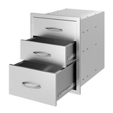AECOJOY Outdoor Kitchen Drawers 18.1"Wx23.2"Hx23.2"D, Stainless Steel Triple BBQ Drawer, Flush Mount for Outdoor Kitchen Island or Grill Station