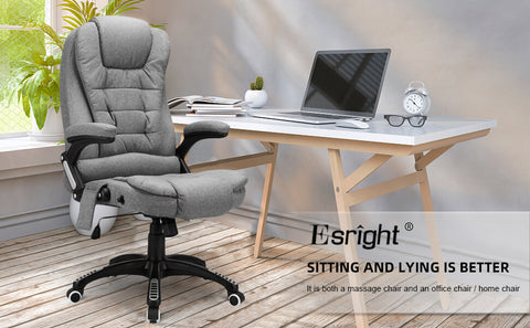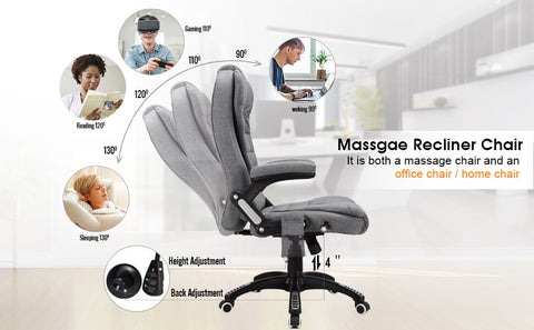 Ergonomic Office Chair with Heated Massage, High Back Fabric Computer Chair Height Adjustable, Desk Chair Recliner with Lumbar Support, Gray
