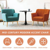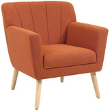 Mid-Century Modern Fabric Club Chair Solid Wood Legs Accent Chair Orange