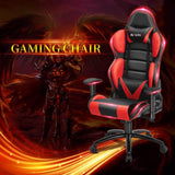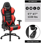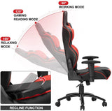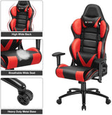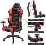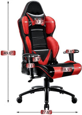 Homhum Ergonomic Reclining Gaming Chair, Leather Racing Chair with High Backrest and Adjustable Seat, E-Sports Chair with Lumbar Pillow, Red