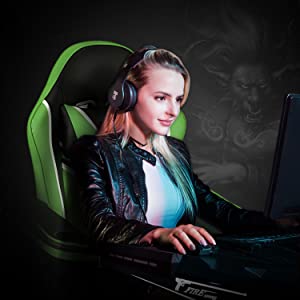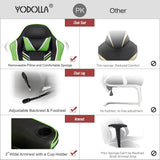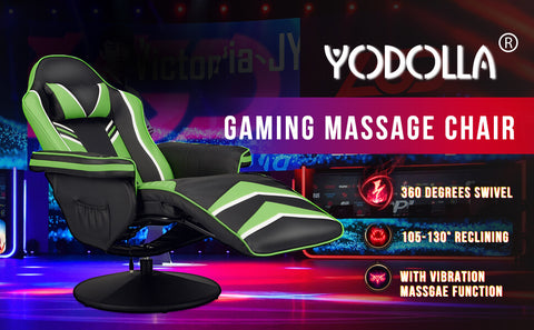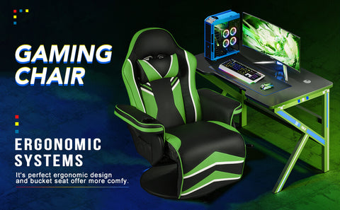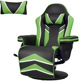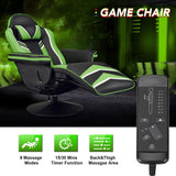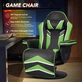 Gaming Chair Recliner Ergonomic Racing Chair with Vibration Massage Adjustable Backrest and Footrest, Swivel Faux Leather Office Chair, Green