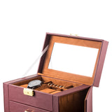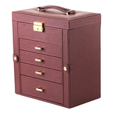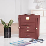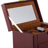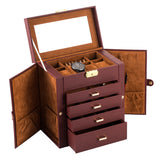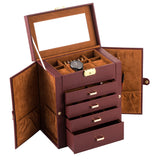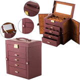 Synthetic Leather Huge Jewelry Box Mirrored Watch Organizer Storage Lockable Gift Case Brown