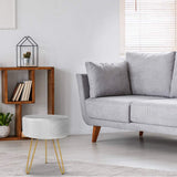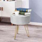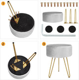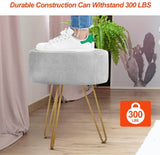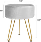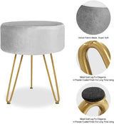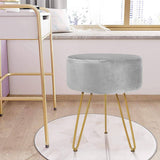 Velvet Footrest Ottoman Round Modern Upholstered Vanity Footstool Side Table Seat Dressing Chair with Golden Metal Leg, Gray