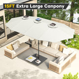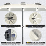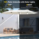 YODOLLA 15ft Patio Umbrella with Solar Lights, Outdoor Large Double Umbrella with 156 PCS LED Lights and Crank Handle for Backyard Deck Pool Shade, Beige