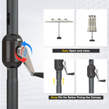 • Crank Handle for Easy Adjustment: Easily adjust the umbrella’s angle or open and close it with the convenient crank handle.