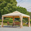 12FT Gazebo Canopy Hexagonal Double Roof Patio Gazebo Steel Frame Pavilion with Netting and Shade Curtains, Cream