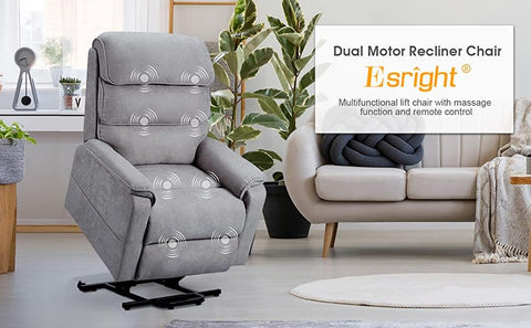 Dual Motor Electric Power Recliner Lift Chair, Linen Fabric Electric Recliner for Elderly, Heated Vibration Massage Sofa with Side Pockets & Remote Control, Gray