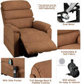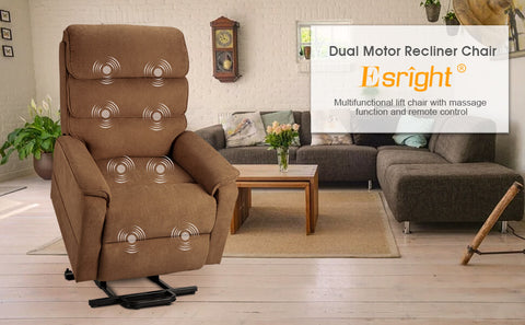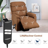 Dual Motor Electric Power Recliner Lift Chair Linen Fabric Electric Recliner for Elderly, Heated Vibration Massage Sofa with Side Pockets & Remote Control, Brown