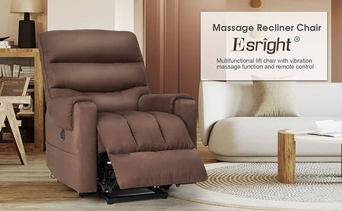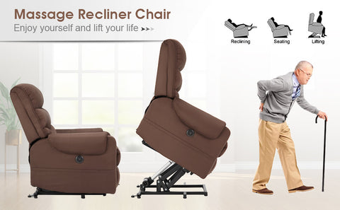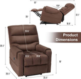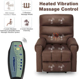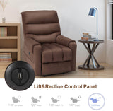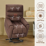 Electric Power Lift Recliner Chair Recliner Sofa for Elderly, Microfiber Recliner Chair with Heated Vibration Massage, 2 Side Pockets and USB Ports, Brown