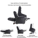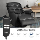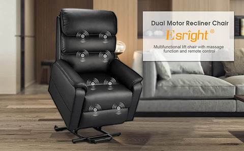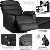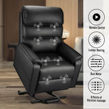 Electric Power Recliner Lift Chair Dual Motor Faux Leather Electric Recliner for Elderly, Heated Vibration Massage Sofa with Side Pockets & Remote Control, Black