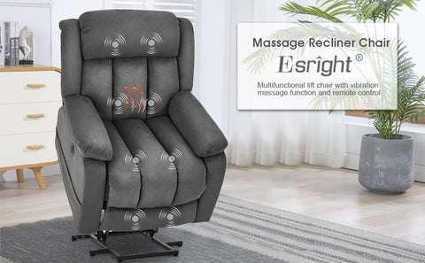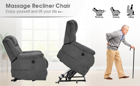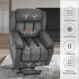 Gray Power Lift Chair Electric Recliner Sofa for Elderly, Microfiber Electric Recliner Chair with Heated Vibration Massage, Side Pocket and USB Port, Gray
