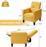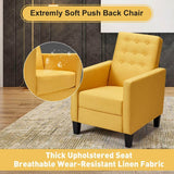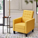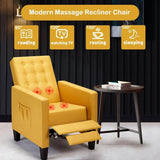 Mid-Century Modern Fabric Recliner with Vibrated Massage, Push Back Recliner Chair w/Side Pocket and Button Tufted Back Single Sofa Chair for Living Room, Yellow