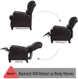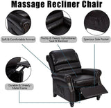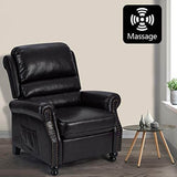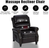 Massage Recliner Chair, Arm Chair Push Back Recliner with Rivet Decoration, PU Leather Power Recliner Chair with 6 Point Massage and Heat (Brown)