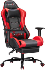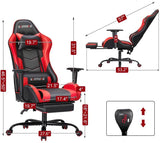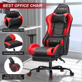 Gaming Chair Massage Ergonomic Office Chair High Back Computer Chair Racing PU Leather Recliner with Footrest, Black & Red